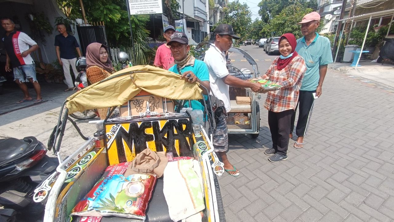 Tukang becak juga menjadi sasaran bakti sosial notaris ini karena mereka jarang mendapatkan penumpang sebab masyarakat lebih memilih ojek online sebagai sarana transportasinya.