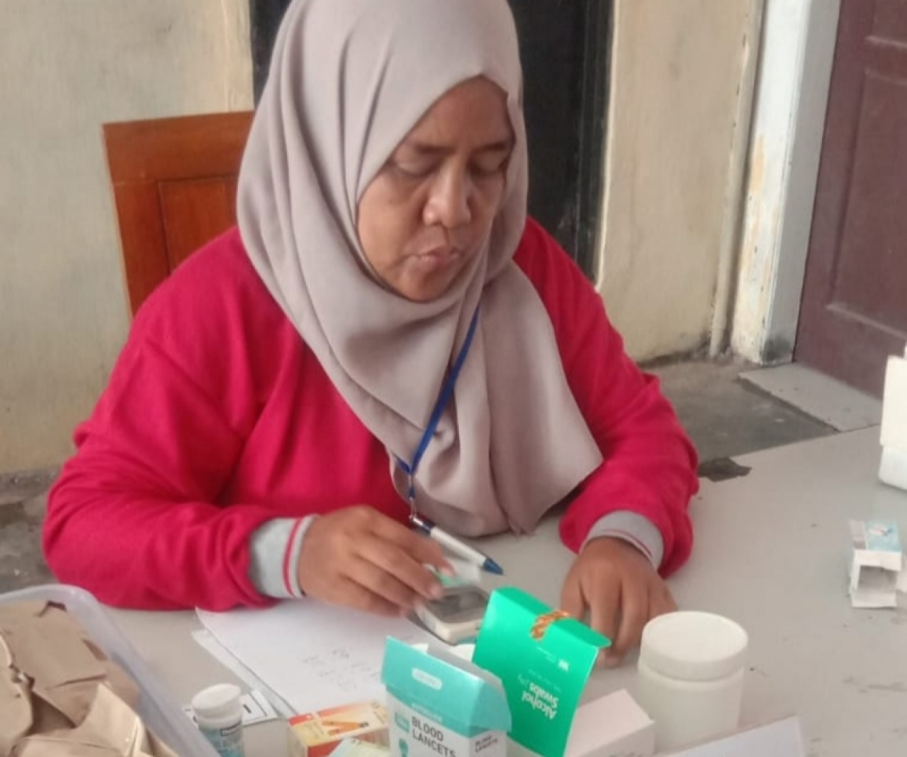 Setelah melakukan berbagai macam cek kesehatan mulai dari timbang badan, cek tekanan darah, cek tekanan gula, cek Kolesterol sampai konsultasi gratis dengan petugas dari Puskesmas Jabon mengenai kondisi kesehatan para lansia kemudian diberi obat obatan.