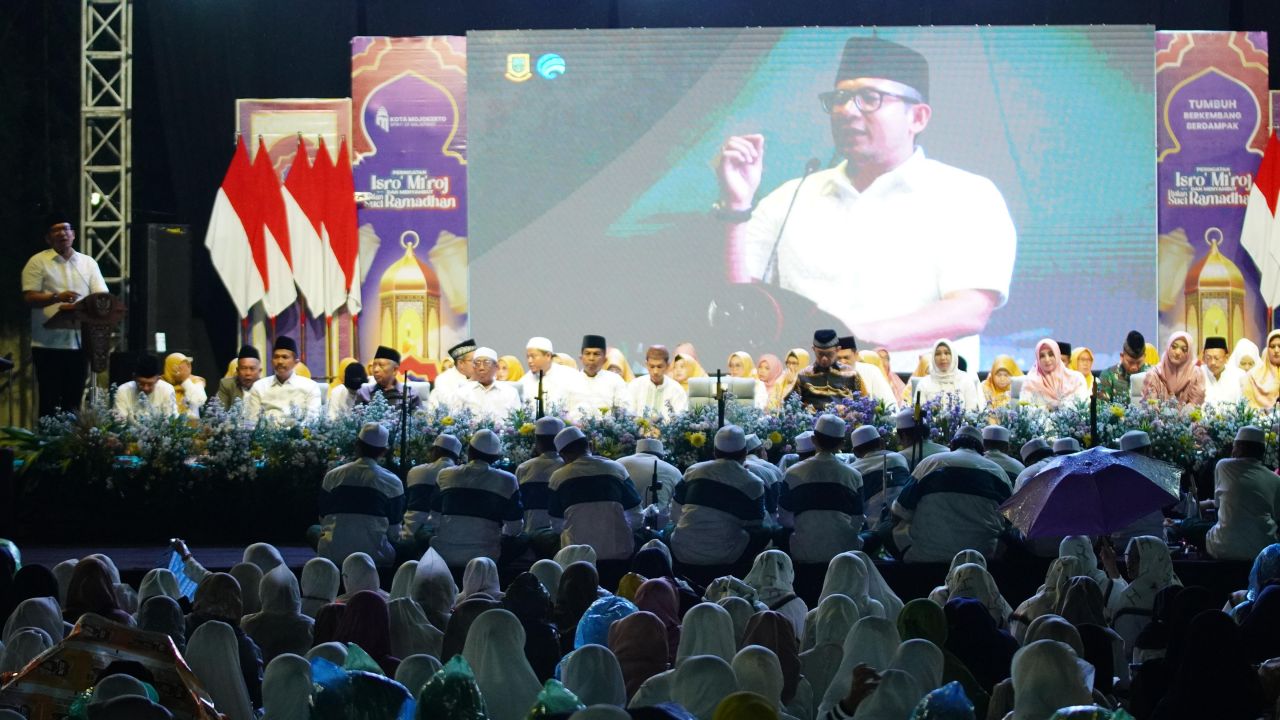 SURABAYA PAGI.COM, Mojokerto - Memperingati Isra Miraj dan menyambut bulan Ramadan, Pemerintah Kota (Pemkot) Mojokerto menggelar pengajian akbar bersama Ustad Wijayanto di halaman Parkir Timur GOR dan Seni Mojopahit, Jalan Gajah Mada 149, Kota Mojokerto, Jumat (8/3/ 2024) malam.