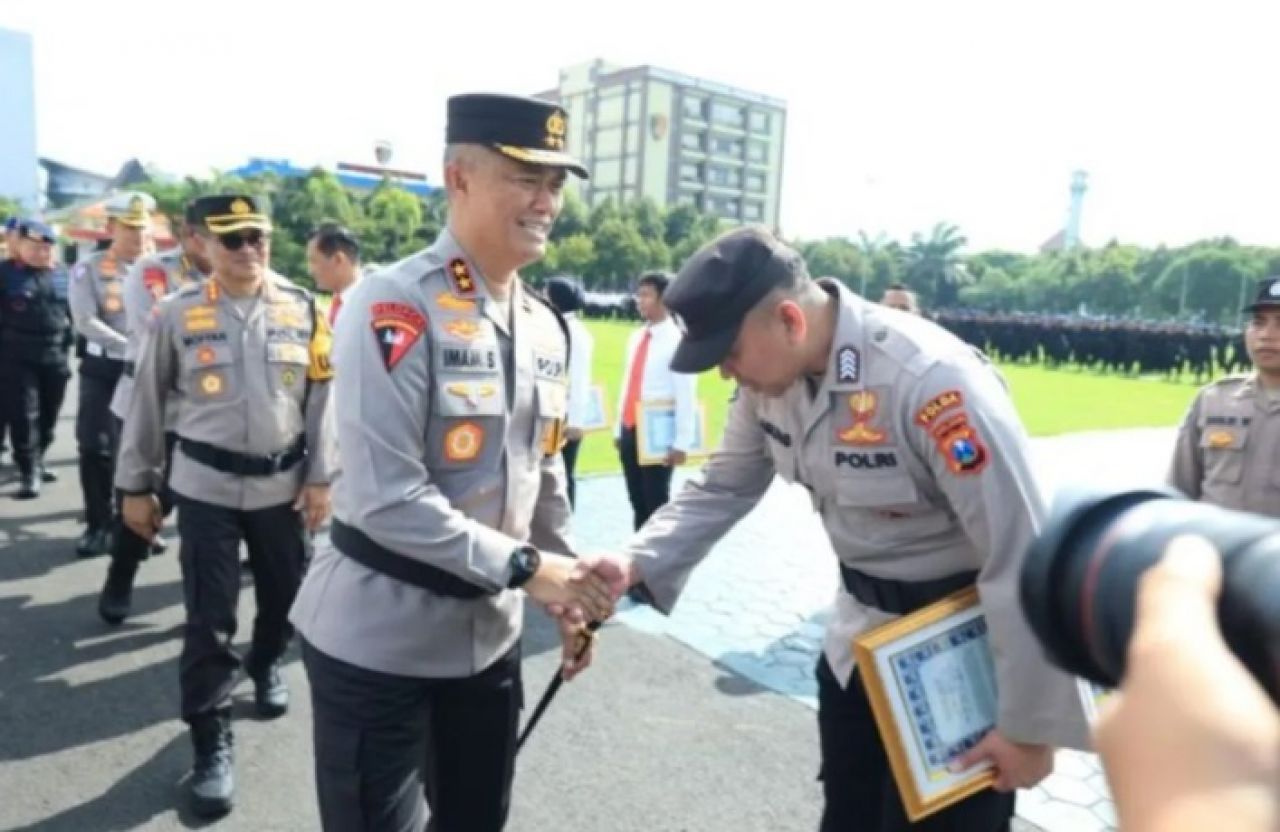 SURABAYAPAGI.COM, Surabaya - Kapolda Jawa Timur Inspektur Jenderal Polisi Imam Sugianto memberikan penghargaan kepada 35 anggota Polri dan aparatur sipil negara (ASN) di Polda setempat yang dinilai berprestasi.