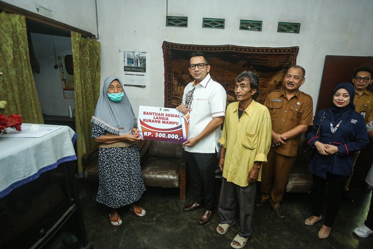 Mas Pj menyerahkan bantuan uang tunai Rp 500 ribu dengan mendatangi langsung rumah Nenek Soepiningsih di Jalan Mayjen Sungkono Nomor 16, Magersari.