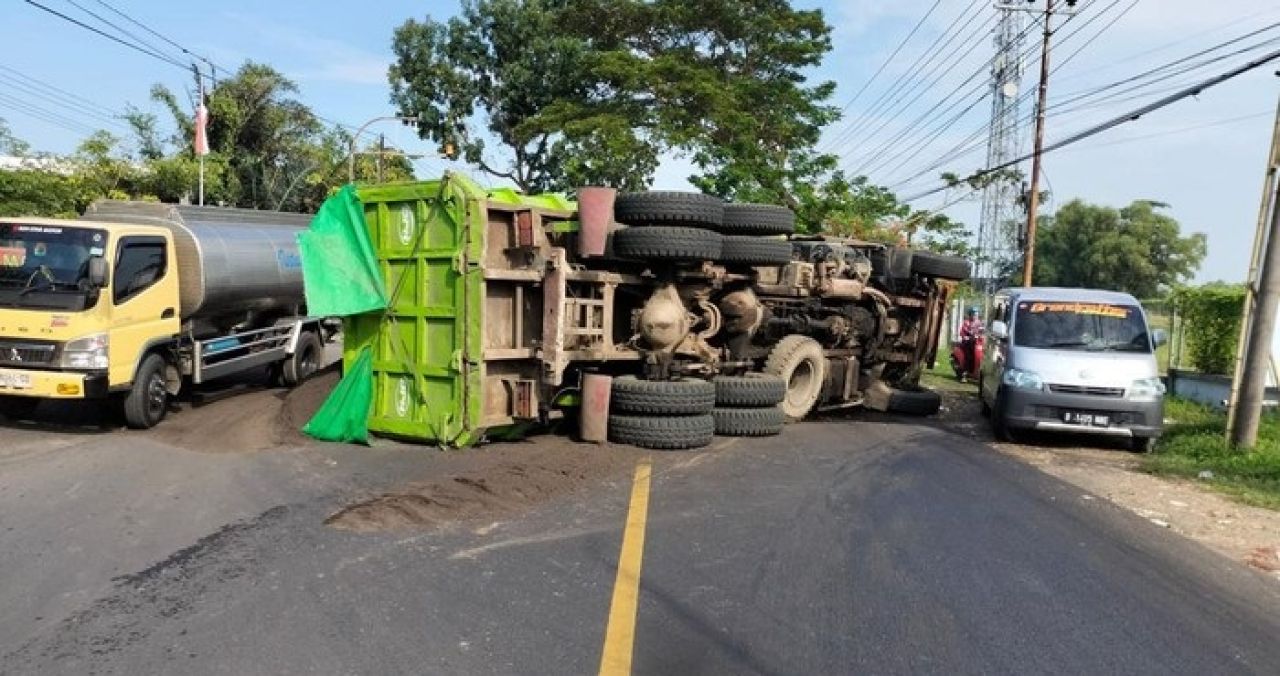 Beruntung tak ada korban jiwa dalam kejadian tersebut. Namun, terdapat kerugian materiil sebab truk mengalami penyok di sejumlah bagian. Apalagi muatan pasir di dalam bak juga jatuh ke aspal.