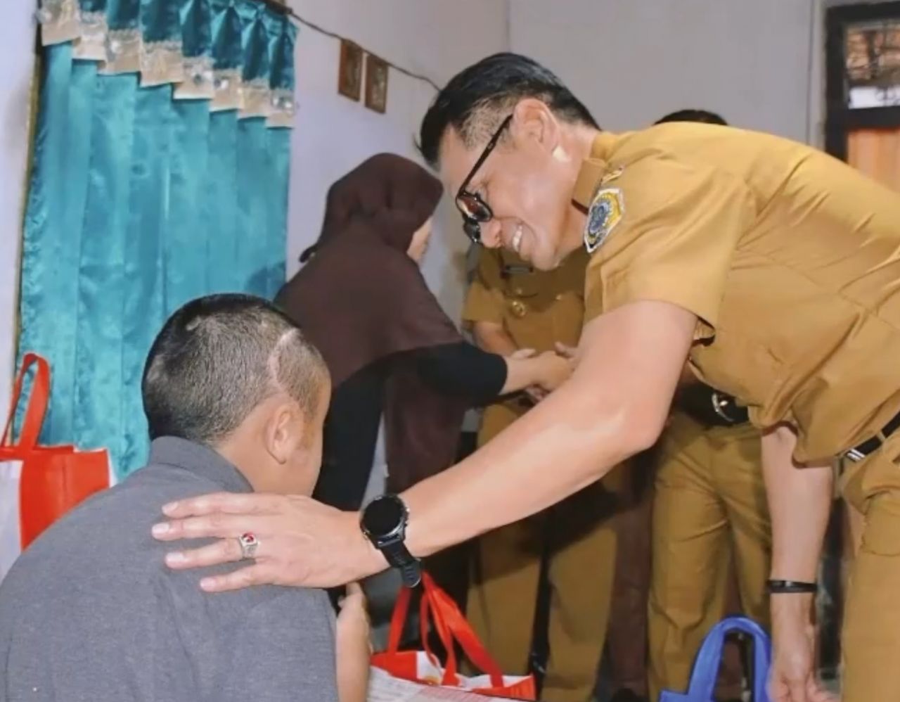 SURABAYAPAGI.COM, Tulungagung - Pj Bupati Tulungagung Dr. Ir. Heru Suseno, M.T bersama Sekda Tulungagung Drs. Tri Hariadi, M.Si dan Ketua BAZNAS Tulungagung KH. Samsul Umam menyerahkan bantuan kepada Nailul Izza, putra dari Bapak Mundir yang terkena musibah tertimpa pohon tumbang. Akibat peristiwa tersebut korban mengalami gegar otak hingga sempat dilarikan ke rumah sakit.