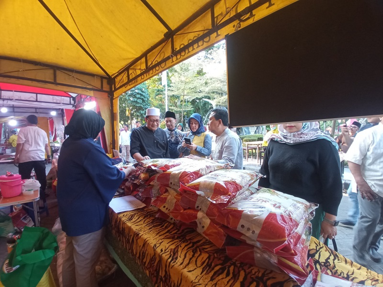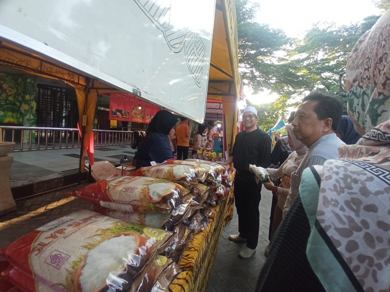 Sekedar informasi, di stand atau tenant BULOG sendiri, warga bisa membeli beras premium, gula, minyak goreng, dan tepung terigu sesuai HET (Harga Eceran Tertinggi). Diantara beras premium hanya Rp 69.500, sedangkan tepung terigu Rp11.000, kemudian Gula Rp16.500, dan Minyak goreng Rp16.000.