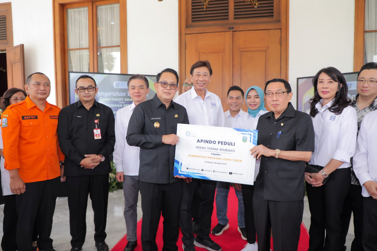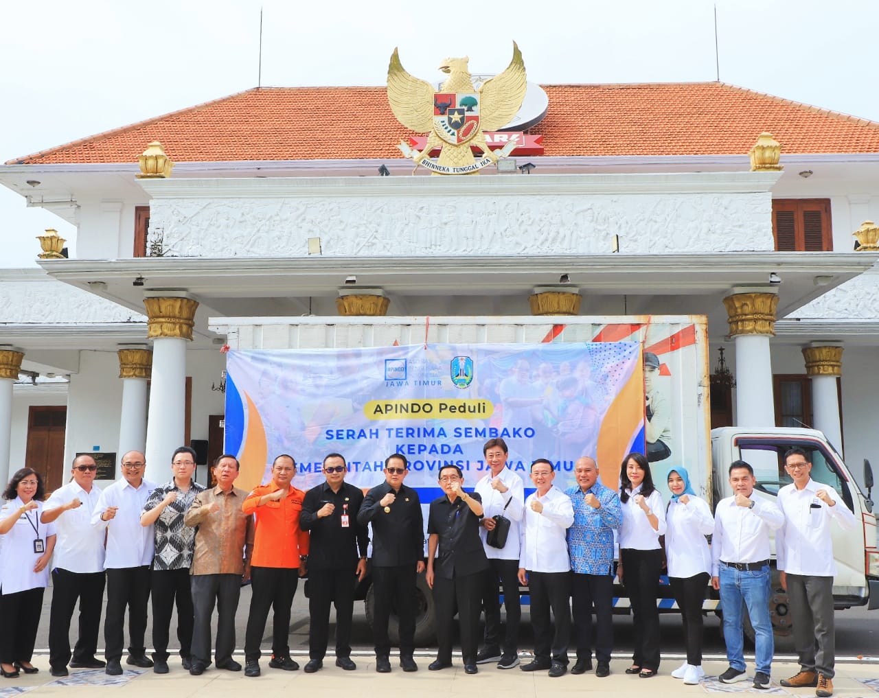 Bantuan sembako berupa beras, kopi, gula, garam, minyak goreng serta beberapa bahan pokok tersebut diserahkan langsung oleh Ketua Dewan Pertimbangan Apindo Jatim Alim Markus kepada Pj. Gubernur Adhy.