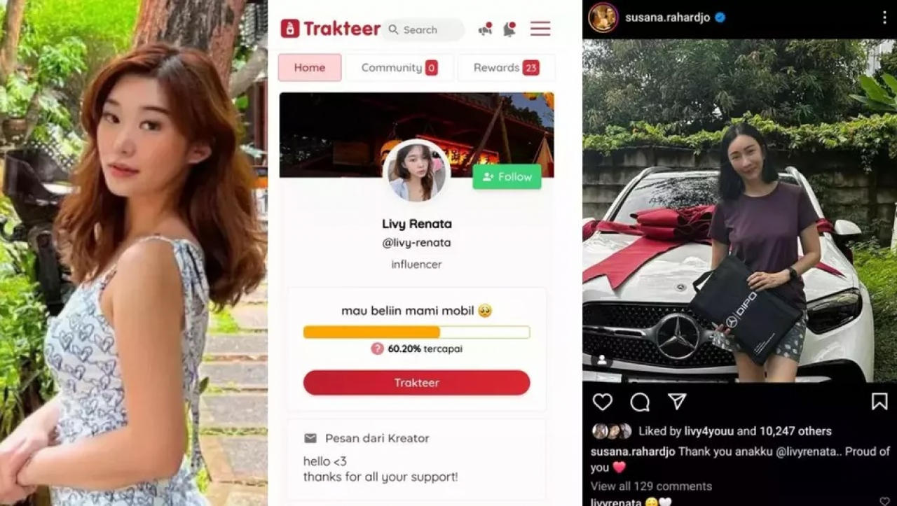 SURABAYAPAGI.com, Jakarta - Baru-baru ini media sosial Twitter (X) dihebohkan tindakan selebritas dan kreator konten Livy Renata yang diduga meminta donasi membelikan mobil mewah untuk ibunya Susana Rahardjo melalui platform digital Trakteer.