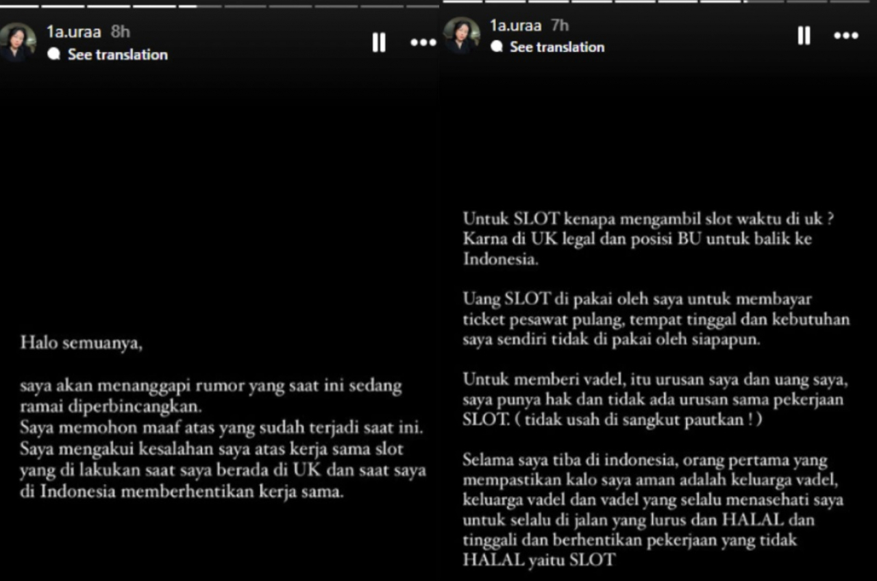 "Saya mengakui kesalahan saya atas kerja sama slot yang dilakukan saat saya berada di UK dan saat saya di Indonesia memberhentikan kerja sama," ujar Lolly di IG Stories, Selasa (26/03/2024).