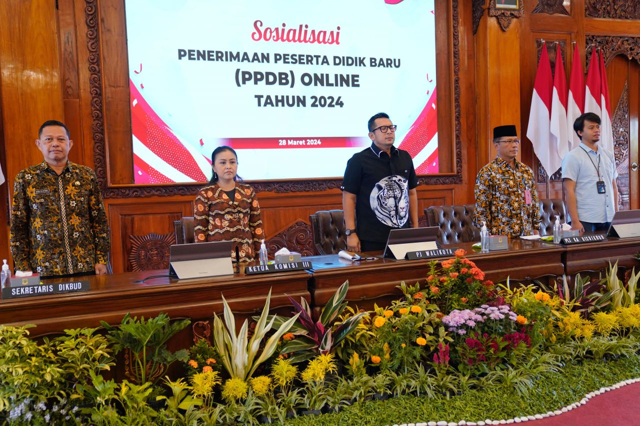 SURABAYA PAGI.COM, Mojokerto - Pj Wali Kota Mojokerto Moh. Ali Kuncoro buka sosialisasi Penerimaan Peserta Didik Baru (PPDB) online tahun 2024 di Sabha Mandala Madya, Balai Kota Mojokerto, Kamis (28/3/2024).