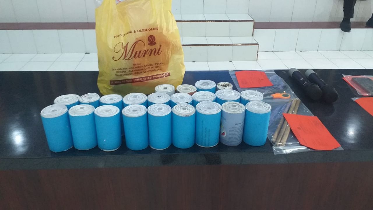 Akhirnya petugas dapat mengamankan YN 17 warga Desa/Kec.Wonodadi pada Jumat 22 Maret 2024 sekitar pukul 23.30, di rumahnya, dari tangan pelaku disita 1 buah Hp, 4 buah kantong plastik berisi handak 2 Kg, 55 bungkus selongsong kertas calon petasan berdiameter 5 sampai 7 Cm dua buah gunting.