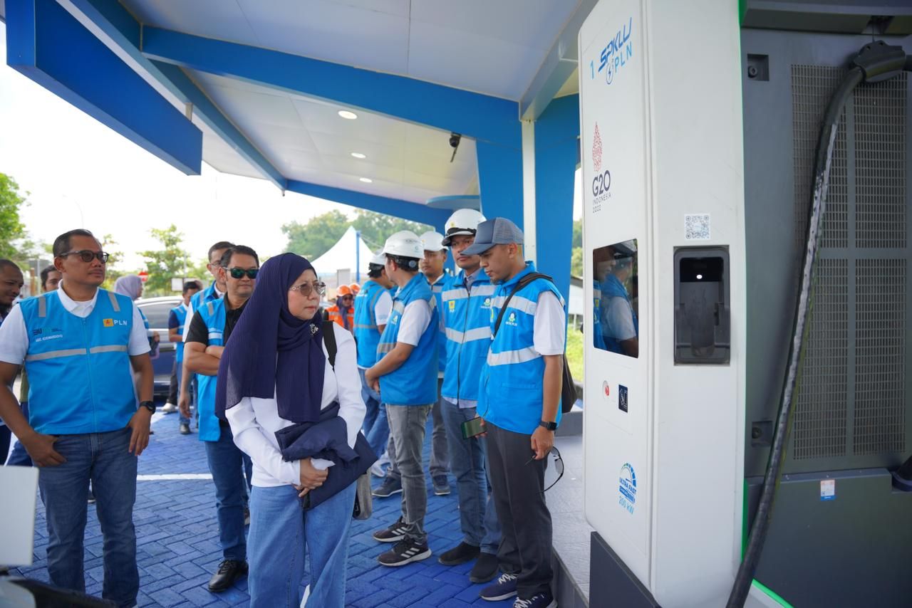 Direktur Retail dan Niaga PT PLN (Persero), Edi Srimulyanti didampingi General Manager PLN UID Jawa Timur Agus Kuswardoyo melakukan inspeksi langsung ke Rest Area 575A Ngawi, Rest Area 626A Caruban dan Rest Area 725A Mojokerto - Surabaya pada Jumat (29/3/2024), guna memastikan kesiapan SPKLU yang akan digunakan oleh para pemudik.