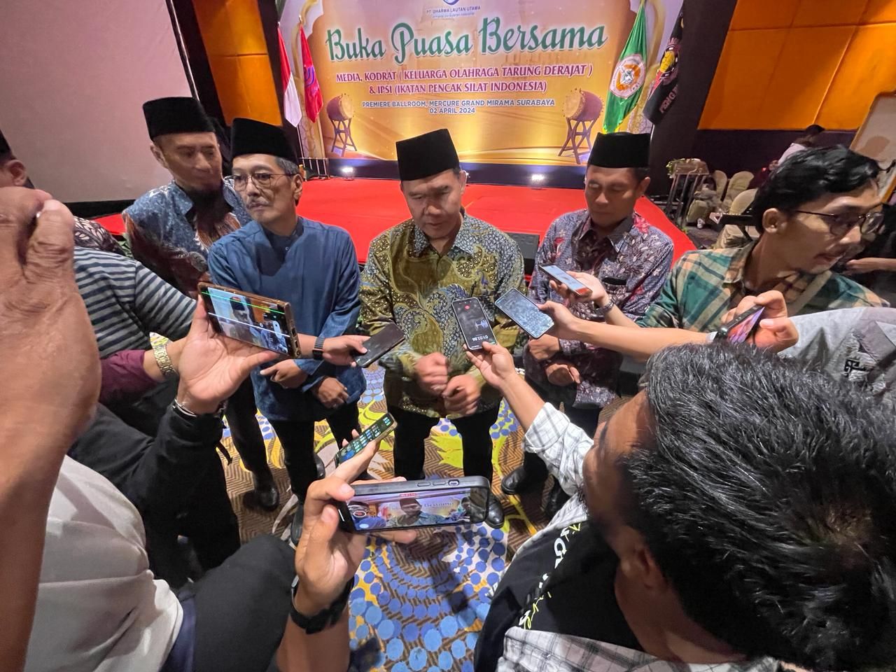 "Anggaran silat ini perlu diperhatikan sekali, yang sekarang ini sangat minim sekali. Kepentingan ribuan perguruan silat seluruh Indonesia, silat itu 20 persen dari total penduduk kita ini adalah pesilat, boleh di cek lah," terangnya saat buka bersama dengan PT Dharma Lautan Utama (DLU) dan atlet tarung drajat dan pencak silat Surabaya. Selasa (2/4/2024).