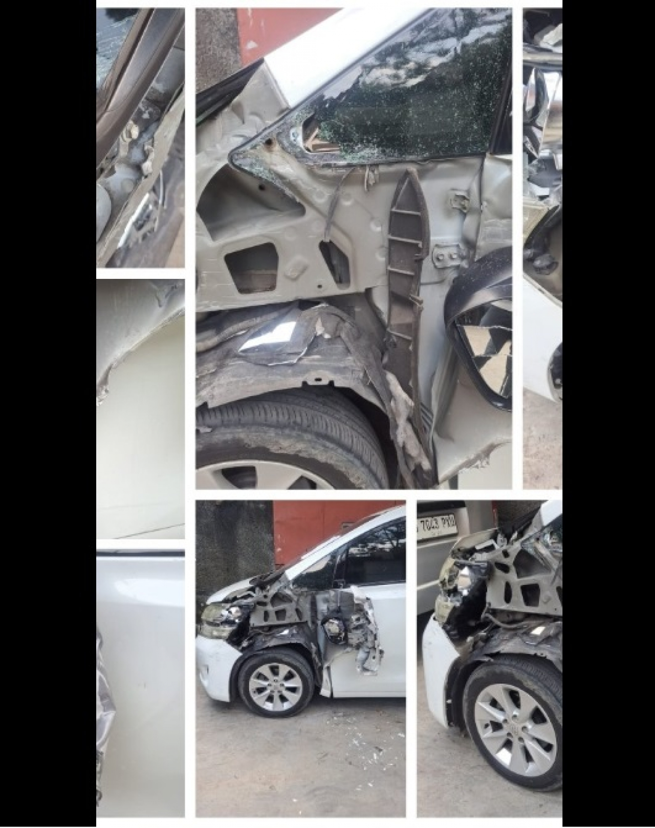 "Alhamdulillah kami semua selamat, kaca depan dan segitiga samping pecah.. wktu kejadian aku mangku bantal Alhamdulillah pecahan kaca gk kena lgsung.. kondisi mobil Alhamdulillah lumayan ringsek," sambungnya.