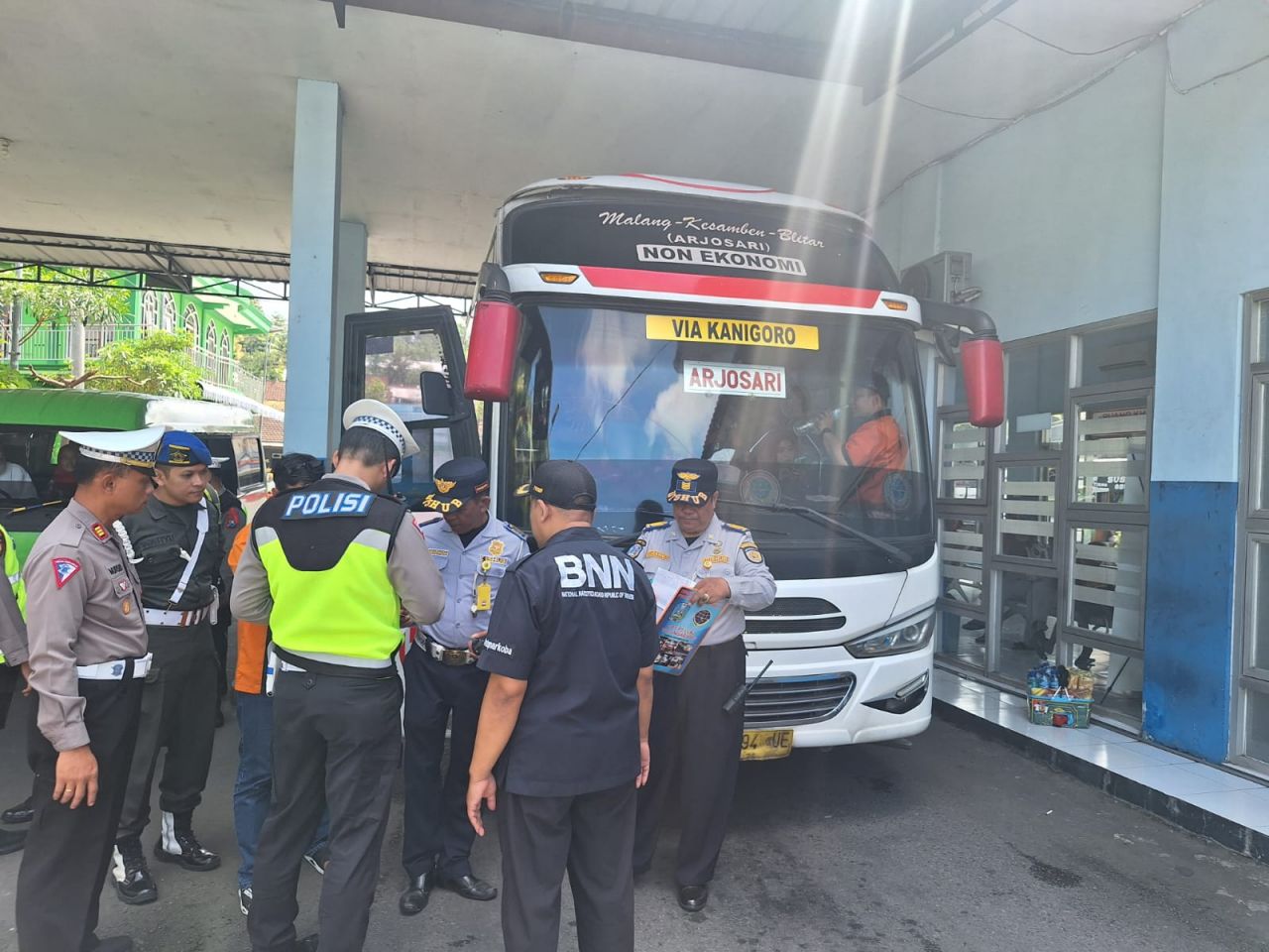 "Kami pagi ini bersama Polres Blitar, lakukan Tes Urine termasuk Kesehatan seluruh awak Bus (Sopir, Kondektur dan Kernet) juga Angkutan Umum, guna antisipasi keselamatan penumpang arus balik yang naik Bus maupun angkutan umum, juga pihak Dishub lakukan Ramp Check kendaraan," Terang Yusuf Eko dari BNNK Blitar