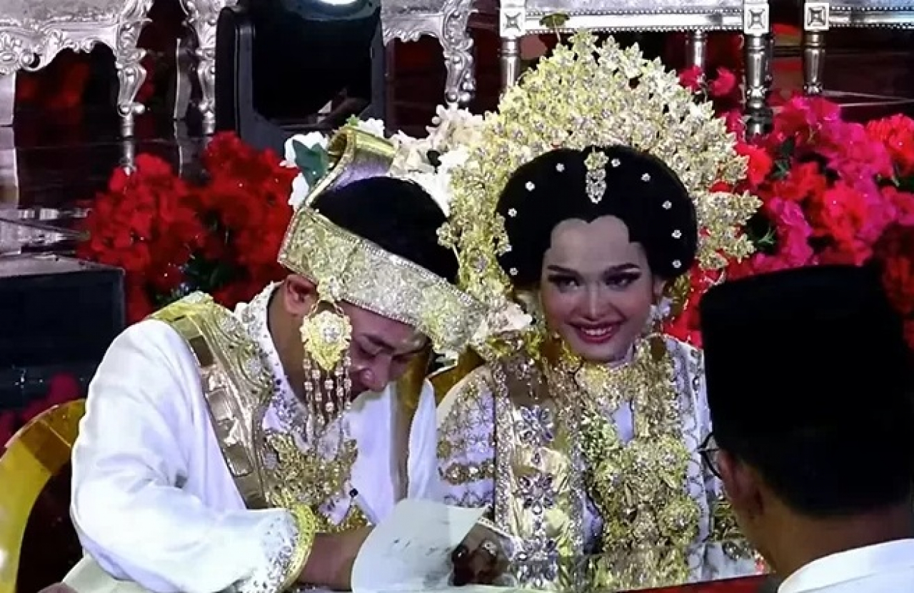 "Istriku, alhamdulillah kita sudah selesai akad dan sah. Semoga kita bisa menjalani rumah tangga yang damai. Rumah tangganya yang sakinah, mawadah dan warohmah serta dilindungi oleh Allah SWT, dijaga juga oleh Allah dan diridhai serta rukun selamanya amin," kata Abdul Azis. klm-01/dsy