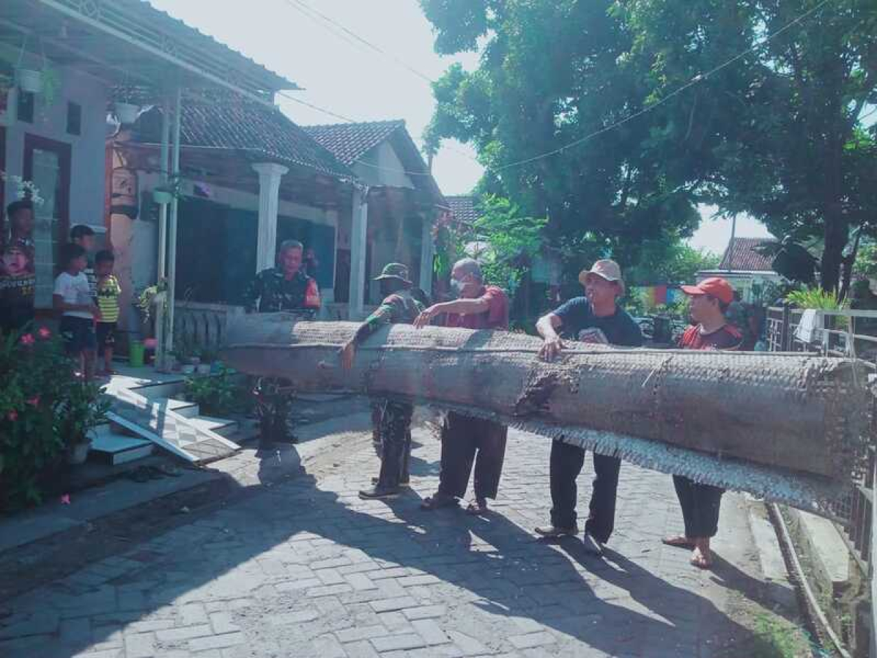 SURABAYAPAGI.com, Sidoarjo - Pasukan Satgas TNI Manunggal Membangun Desa (TMMD) ke-120 dari Kodim 0816/Sidoarjo tengah melaksanakan misi mulia mereka dengan memperbaiki rumah tidak layak huni milik Ibu Karsiati, seorang warga Dusun Kedungsari RT 14 RW 03 Desa Penambangan Kecamatan Balongbendo, Jumat (10/5/2024).