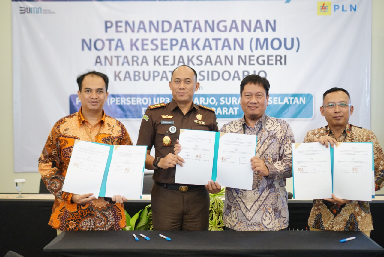 Salah satunya melalui penandatanganan Nota Kesepahaman di bidang hukum perdata dan tata usaha negara yang dilaksanakan oleh PLN Unit Pelaksana Pelayanan Pelanggan (UP3) Sidoarjo beserta PLN UP3 Surabaya Barat dan PLN UP3 Surabaya Selatan dengan Kejaksaan Negeri (Kejari) Kabupaten Sidoarjo (7/5/2024).