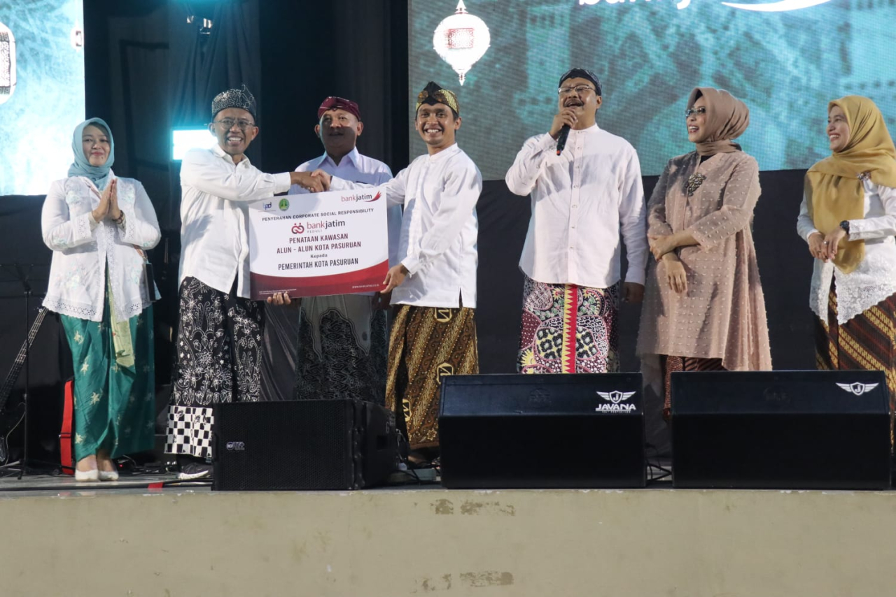 SurabayaPagi - PT Bank Pembangunan Daerah Jawa Timur Tbk (Bank Jatim) secara resmi telah menyerahkan bantuan Corporate Social Responsibility (CSR) kepada Kota Pasuruan. Bantuan yang diberikan berupa penataan kawasan alun-alun Kota Pasuruan.