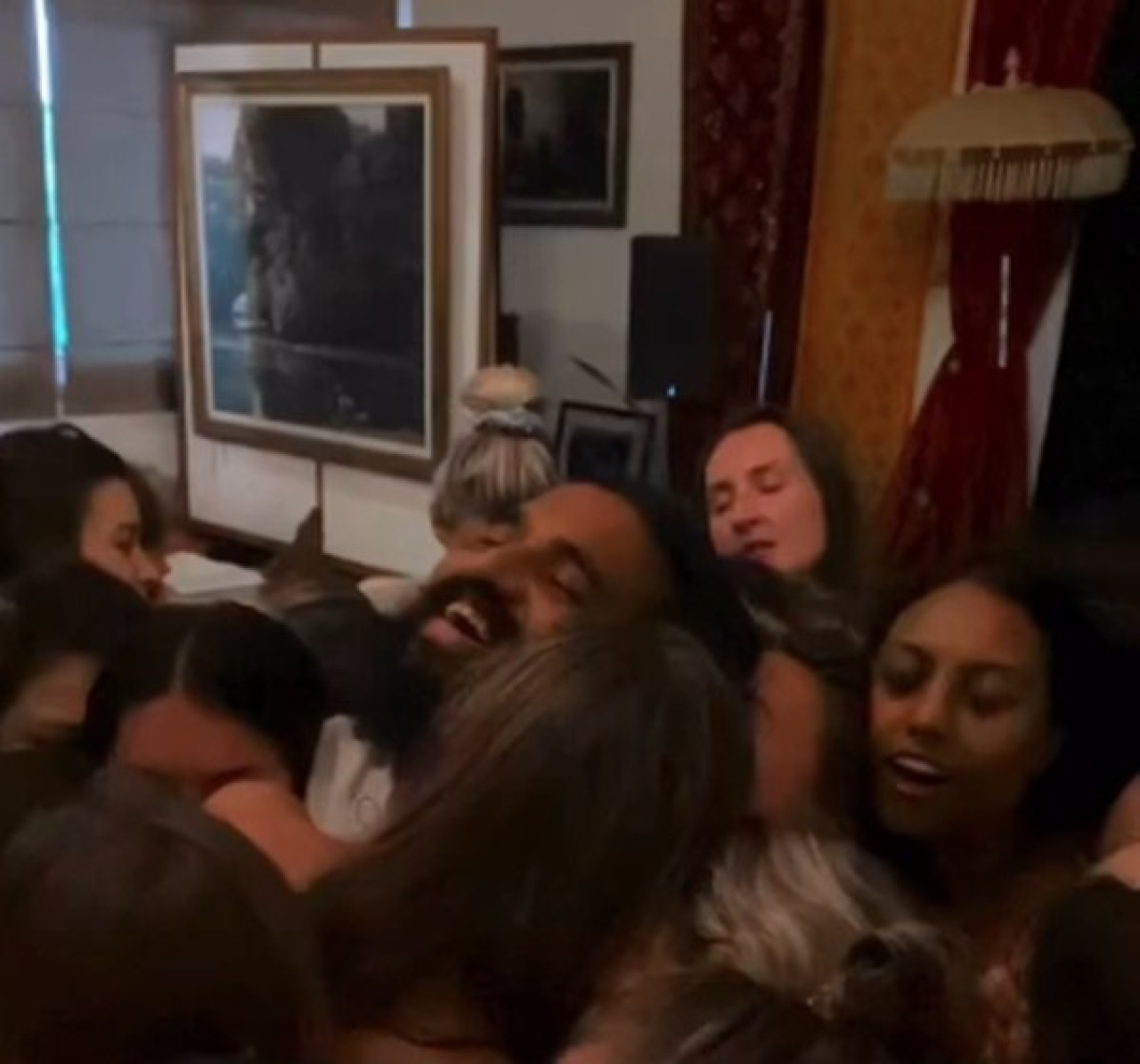 Dalam video itu, terlihat ada seorang pria brewok yang dipeluk sejumlah perempuan WNA berpakaian seksi. Mereka meliuk-liuk erotis sembari meraba-raba tubuh pria itu.