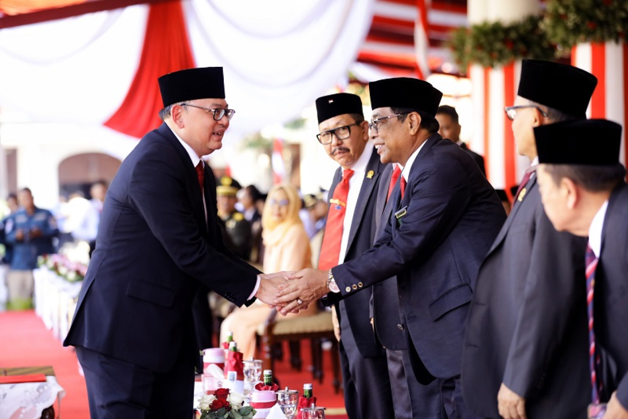 SURABAYAPAGI.com, Surabaya - Plh Gubernur Jatim Bobby Soemiarsono menjadi Inspektur Upacara Peringatan Hari Kebangkitan Nasional (Harkitnas) ke-116 di Halaman Gedung Negara Grahadi Surabaya, Senin (20/5/2024).