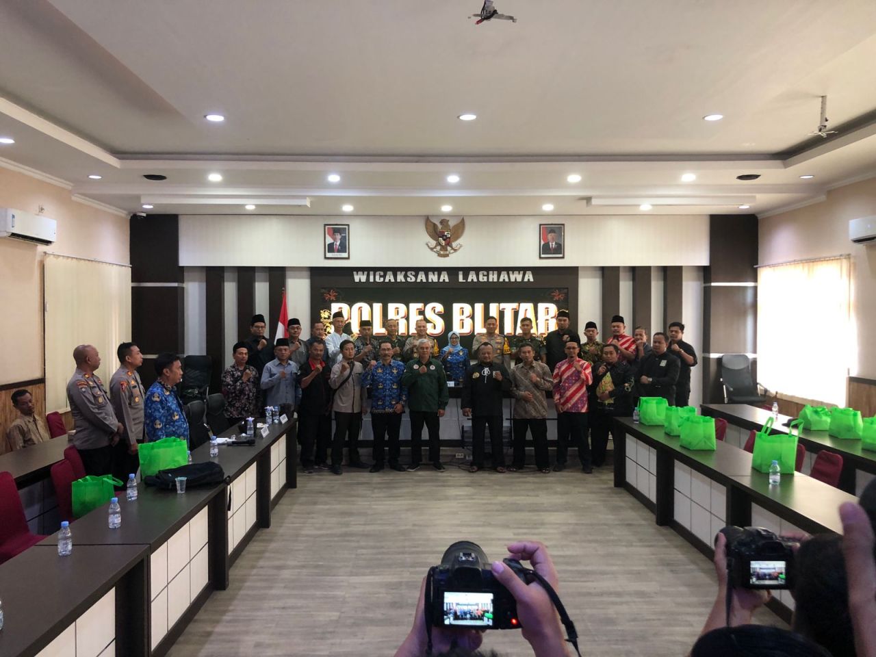 SURABAYAPAGI.COM, Blitar - Guna ciptakan wilayah se Blitar Raya damai, aman dan kondusif, Forpimda Kabupaten Blitar gelar pertemuan dengan pengurus perguruan silat di wilayah se Blitar Raya, pada Senin (20/5) di gedung Rupatama Wicaksana Laghawa Polres Blitar.