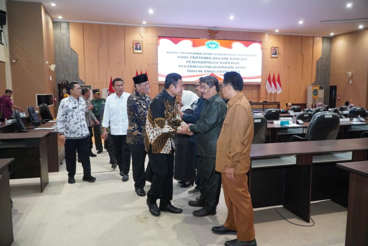 Caption: Bupati saat menyalami anggota DPRD Lamongan.