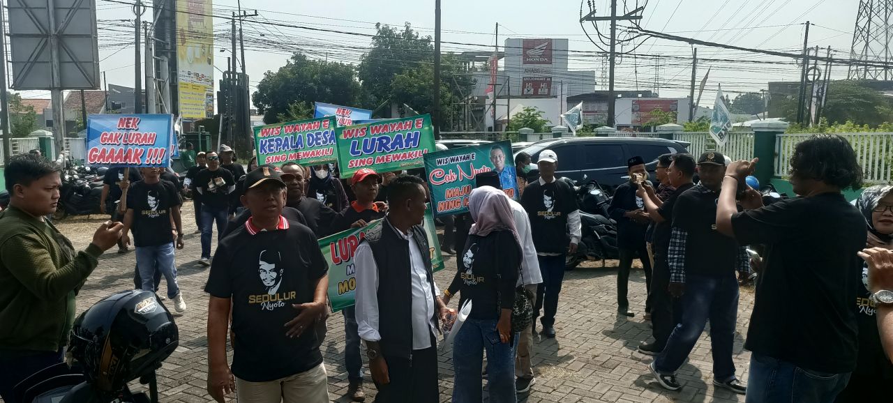 Didampingi puluhan kades dan relawan dari perwakilan desa se-Kabupaten Mojokerto, Sunyoto tiba di Kantor DPC PKB Kabupaten Mojokerto Desa Kenanten, Kecamatan Puri sekitar pukul 10 pagi.