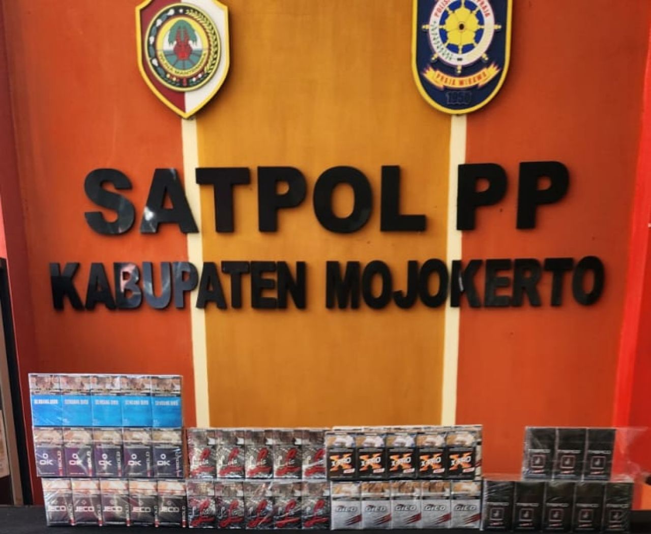 SURABAYA PAGI.COM,.Mojokerto - Satpol PP Kabupaten Mojokerto berhasil menyita 17.620 batang rokok atau 881 bungkus rokok ilegal senilai Rp 21.440.000, Selasa (28/5/2024).