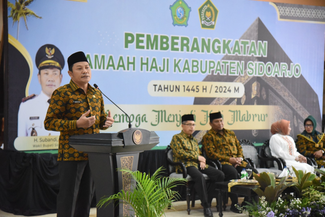 SURABAYAPAGI.COM, Sidoarjo - Plt. Bupati Sidoarjo H. Subandi SH melepas keberangkatan Calon Jamaah Haji (CJH) asal Sidoarjo berangkat ke tanah suci Mekah. Sekitar 732 CJH asal Sidoarjo yang masuk dalam kloter 83 dan 84 diberangkatkan tadi Pagi (3/6) di pendopo Delta Wibawa.