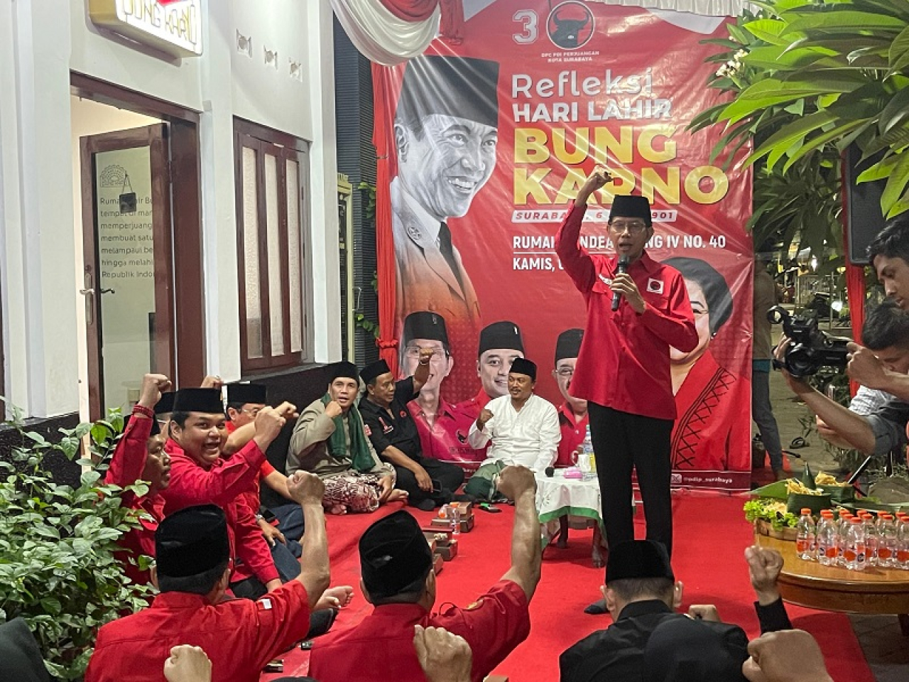 SURABAYAPAGI.com, Surabaya - PDI Perjuangan Kota Surabaya menggelar refleksi kelahiran Bung Karno, Kamis 6 Juni malam. Peringatan berlangsung di rumah Jalan Pandean Gang 4 nomor 40, tempat kelahiran Bung Karno.