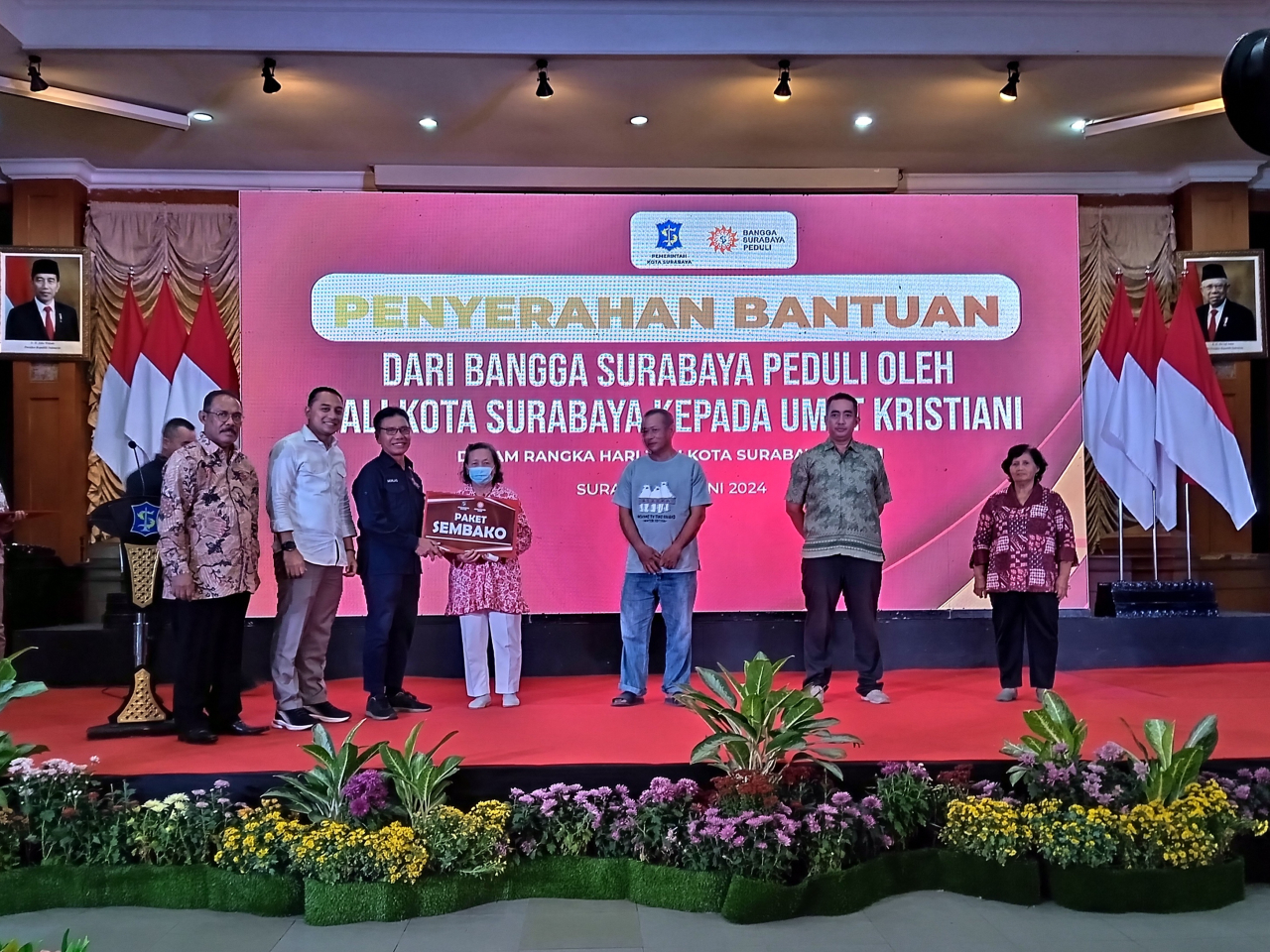 SURABAYAPAGI.COM, Surabaya - Pemerintah Kota (Pemkot) Surabaya, melalui program Bangga Surabaya Peduli, menyerahkan bantuan kepada umat Kristiani dalam rangka hari jadi Kota Surabaya ke-731 di Graha Sawunggaling pada Jumat (7/6/2024).