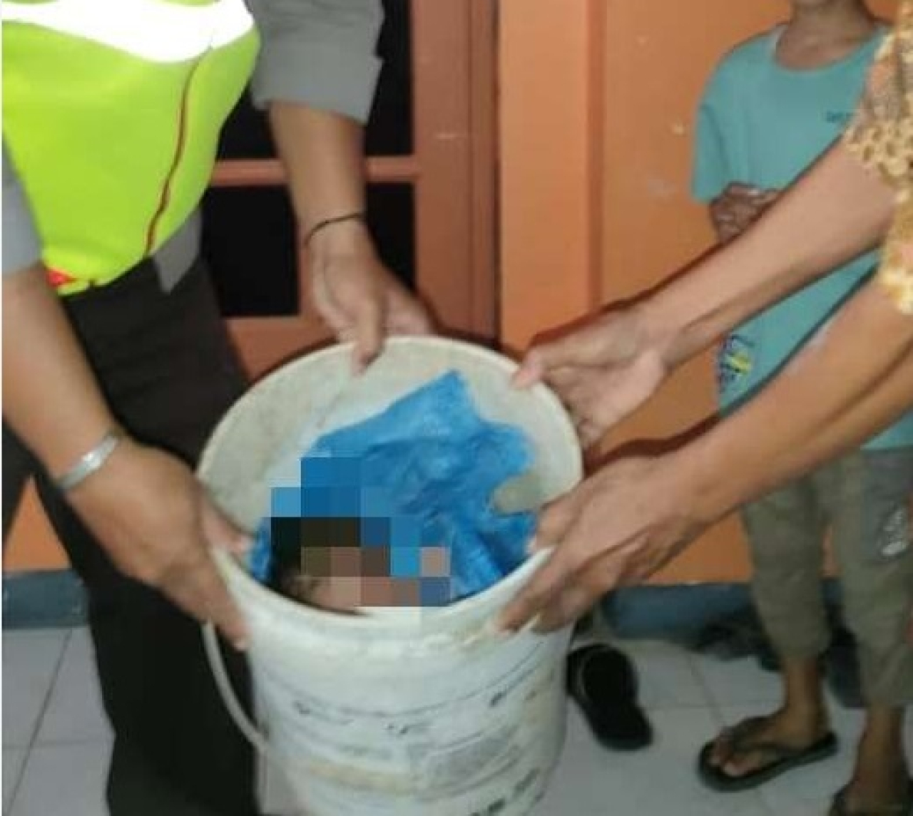 "Awalnya, Bu Holifah ini mengira itu adalah suara orang kencing, namun setelah disenter ke dalam ember bekas cat tembok itu, ia dikagetkan karena itu adalah bayi," imbuhnya.