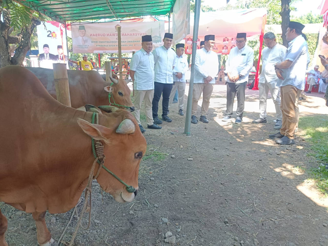 Cahyo menyebut, Wali Kota Eri Cahyadi menyumbang sapi kurban dengan ukuran cukup besar, begitu juga dengan Bayu Airlangga yang menyumbang sapi dengan bobot 1,3 ton, dan sumbangan ini tidak terkait dengan urusan politik.