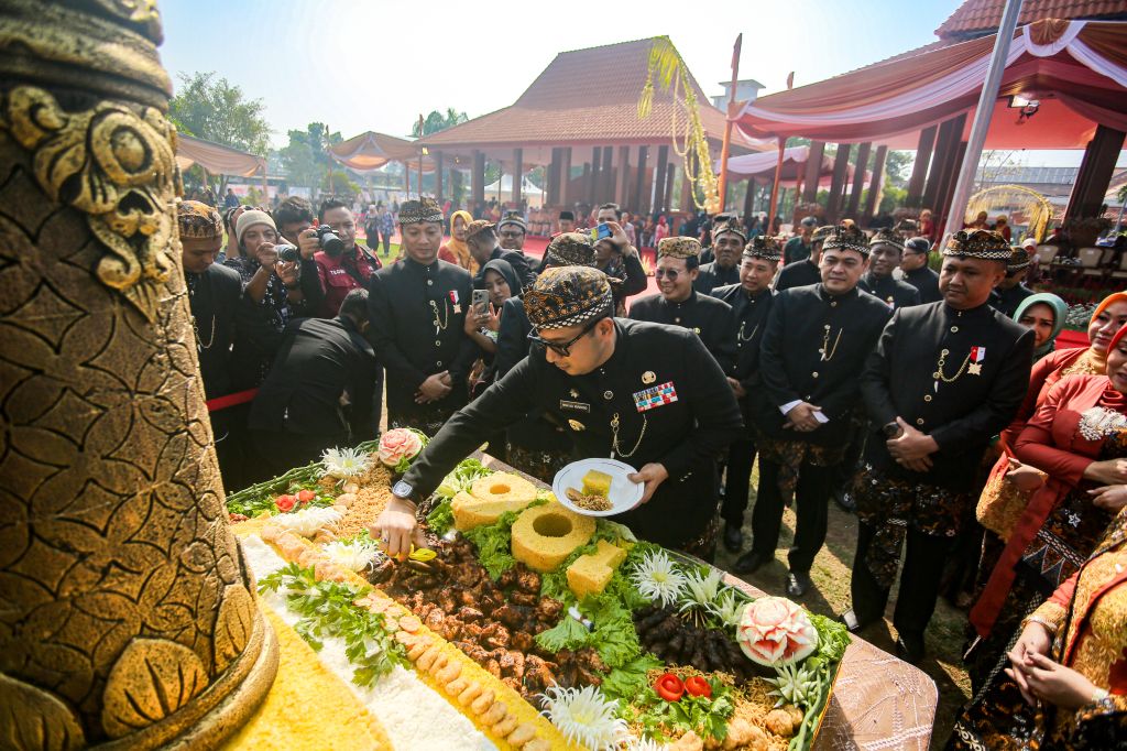 “Tema Hari Jadi ke-106 Kota Mojokerto ini terinspirasi dari masa kejayaan Kerajaan Majapahit yang memiliki makna filosofis begitu dalam –terjemah,” ujar Pj Wali kota Mojokerto Moh. Ali Kuncoro yang juga selaku inspektur upacara saat membacakan amanat dalam Bahasa Jawa.