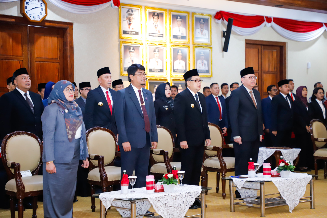 SURABAYAPAGI.COM, Surabaya - Penjabat (Pj) Gubernur Jawa Timur Adhy Karyono mengukuhkan A. Darmuji sebagai Kepala Kantor Regional (Kanreg) Badan Kepegawaian Negara (BKN) II Surabaya berdasarkan Surat Keputusan Kepala BKN nomor 178 tahun 2024 di Gedung Negara Grahadi, Surabaya, Jumat (21/6).