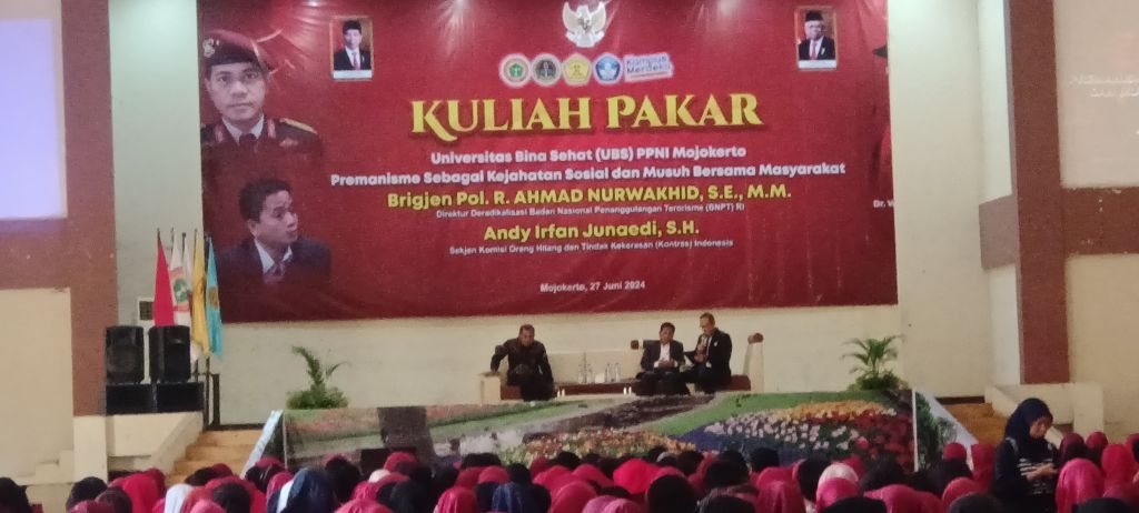 SURABAYA PAGI.COM,.Mojokerto -Universitas Bina Sehat (UBS) PPNI Mojokerto menggelar kuliah pakar bertajuk Premanisme Sebagai Kejahatan Sosial dan Musuh Nrsama Masyarakat, Kamis (27/6/2024).