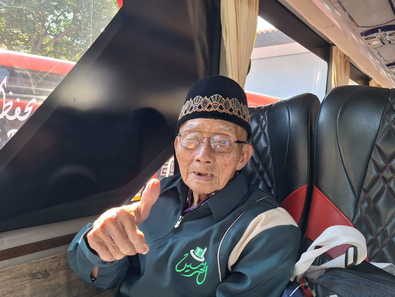 Meski usianya sudah sangat lanjut, Mbah Hardjo tampak sumringah saat tiba di asrama haji, meskipun harus duduk di kursi roda. Dengan gaya khasnya, ia mengacungkan jempol, serta mengucapkan syukur karena tiba dalam kondisi sehat walafiat.