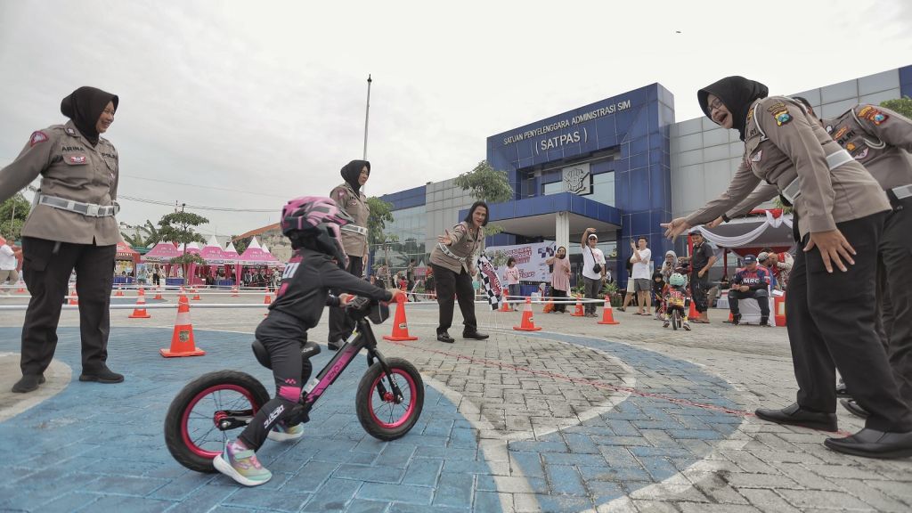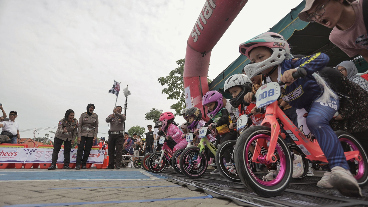 Tingkah gemas dan lucu anak - anak balita yang tersirat pada perlombaan push bike race Satlantas Polrestabes Surabaya yang diikuti oleh 230 peserta racing dari Surabaya dan luar Kota Surabaya.