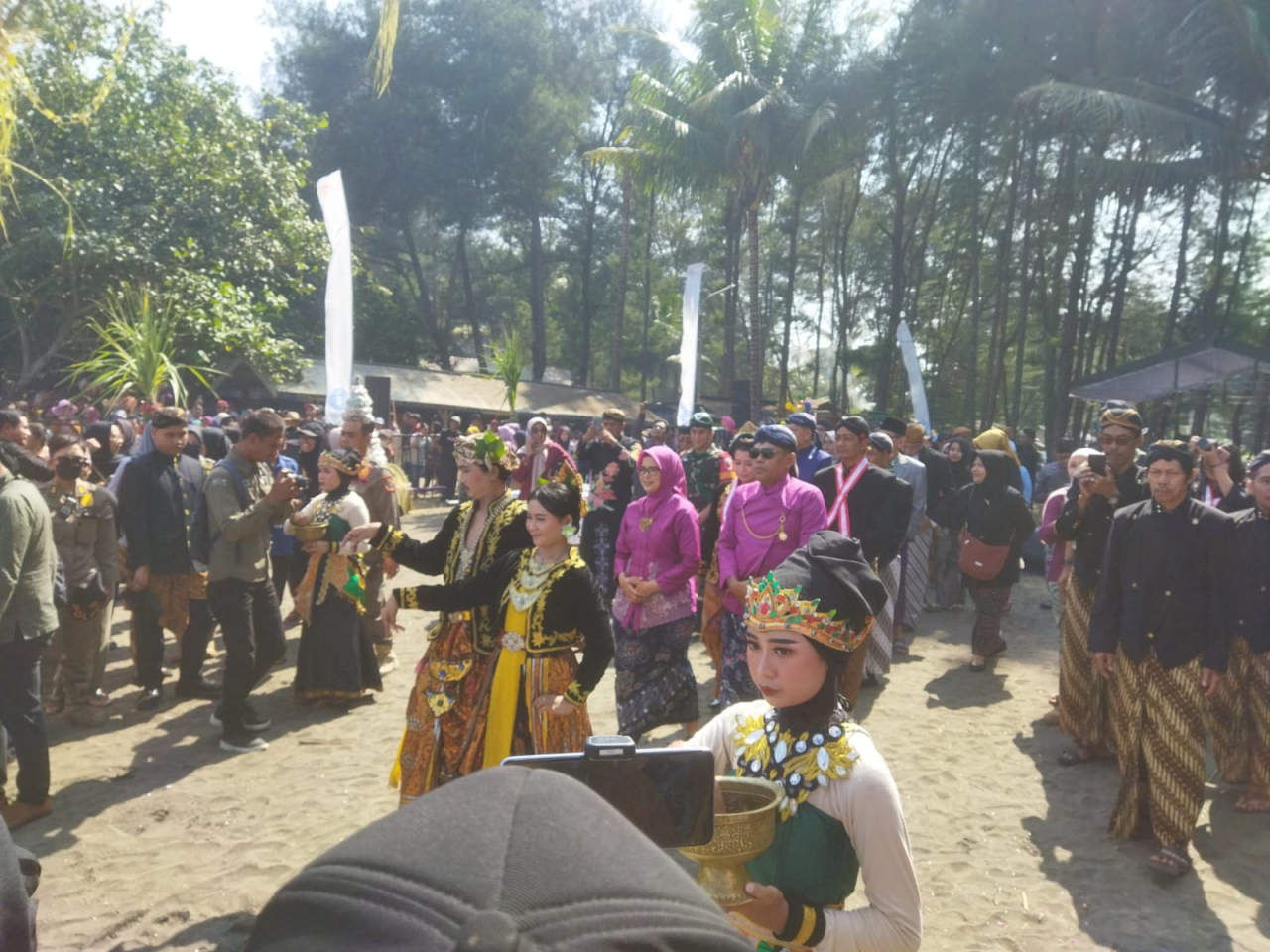 "Kabupaten Blitar memiliki banyak potensi diantaranya tradisi adat Jawa, seni tradisional, pariwisata hingga produk unggulan UMKM lokal. Adanya potensi ini kita sebagai generasi penerus harus bisa mendorong dan mengenalkannya ke publik supaya diketahui secara luas," tambah Hj Rini Syarifah yang mendapat sambutan meriah dari ribuan masyarakat yang hadir menyaksikan Larung Sesaji.