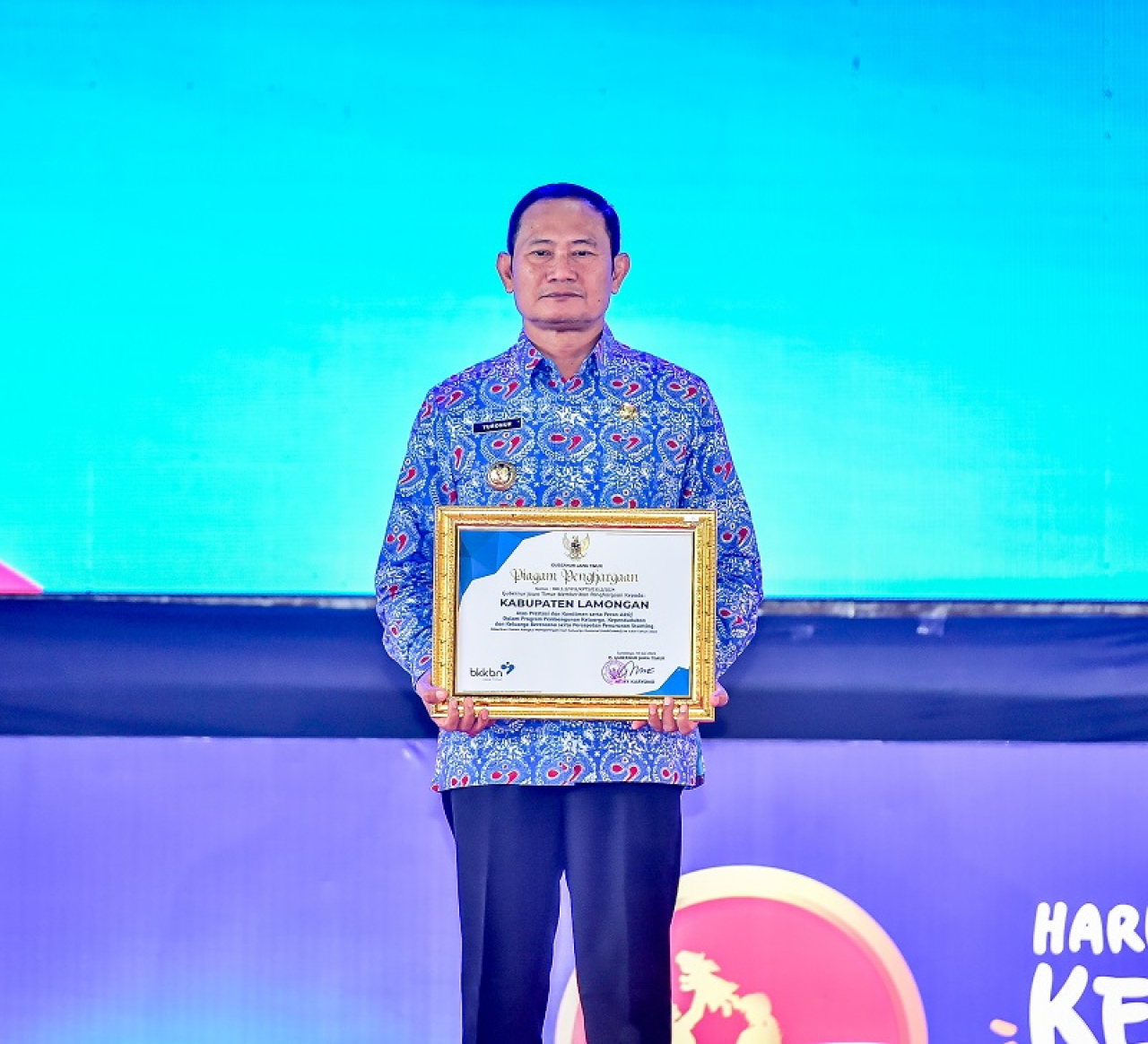 Penghargaan ini diserahkan langsung oleh PJ Gubernur Jawa Timur Adhy Karyono kepada Bupati Lamongan Yuhronur Efendi pada puncak peringatan Hari Keluarga Nasional ke XXXI Provinsi Jawa Timur, Rabu (10/7/2024) di Jatim Expo Convention Exhibition Surabaya.