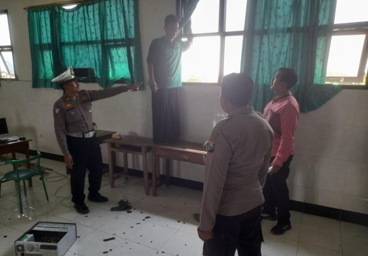 Berdasarkan keterangan yang didapat, Adi awalnya hendak memasang kabel wifi dari ruang multimedia melalui bagian luar.
