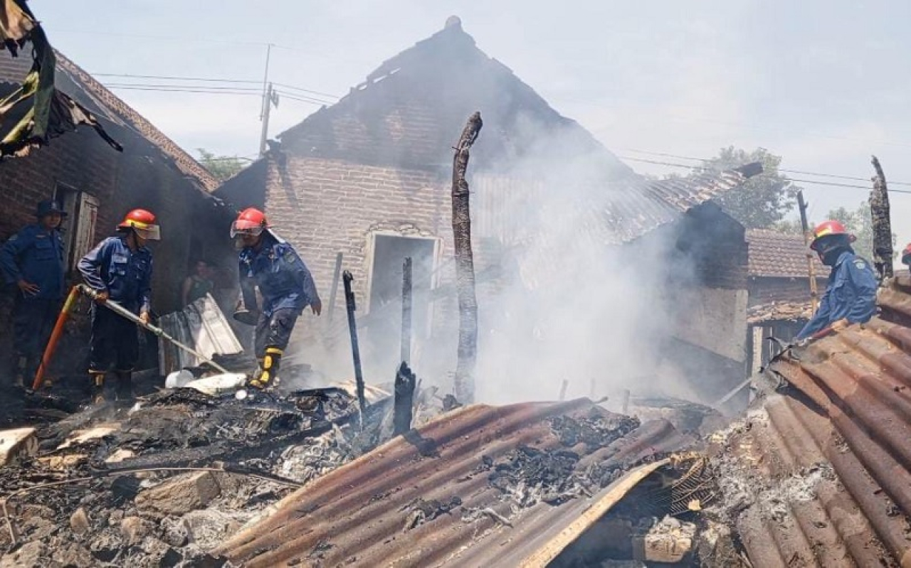 SURABAYAPAGI.com, Sidoarjo - Rumah milik pasangan suami istri, Suyitno dan Darwati warga Desa Tambakrejo, Kecamatan Krembung, Sidoarjo ludes dilalap sijago merah. Kebakaran terjadi pada ruang belakang itu.