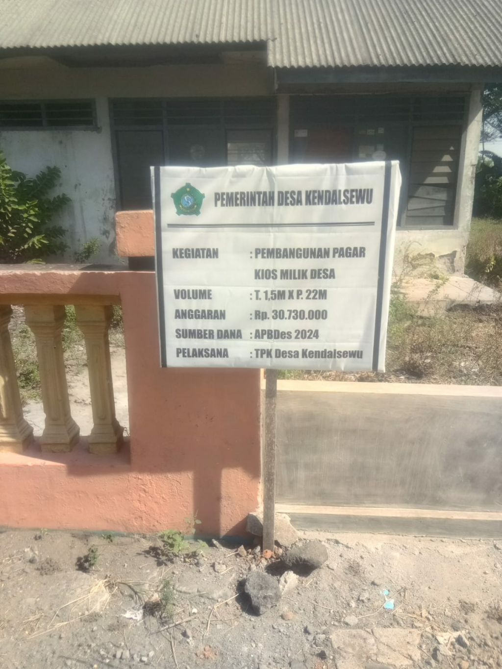 SURABAYAPAGI.COM, Sidoarjo - Pemerintah Desa (Pemdes) Kendalsewu, Kecamatan Tarik, saat ini melaksanakan kegiatan peningkatan perekonomian masyarakat. Proyek yang bersumber anggaran dari dana desa (DD) tahun 2024 tersebut, yakni pembangunan pagar kios milik desa dan pengembangan sarana prasarana usaha mikro, kecil dan menengah serta koperasi (UMKM dan Koperasi).