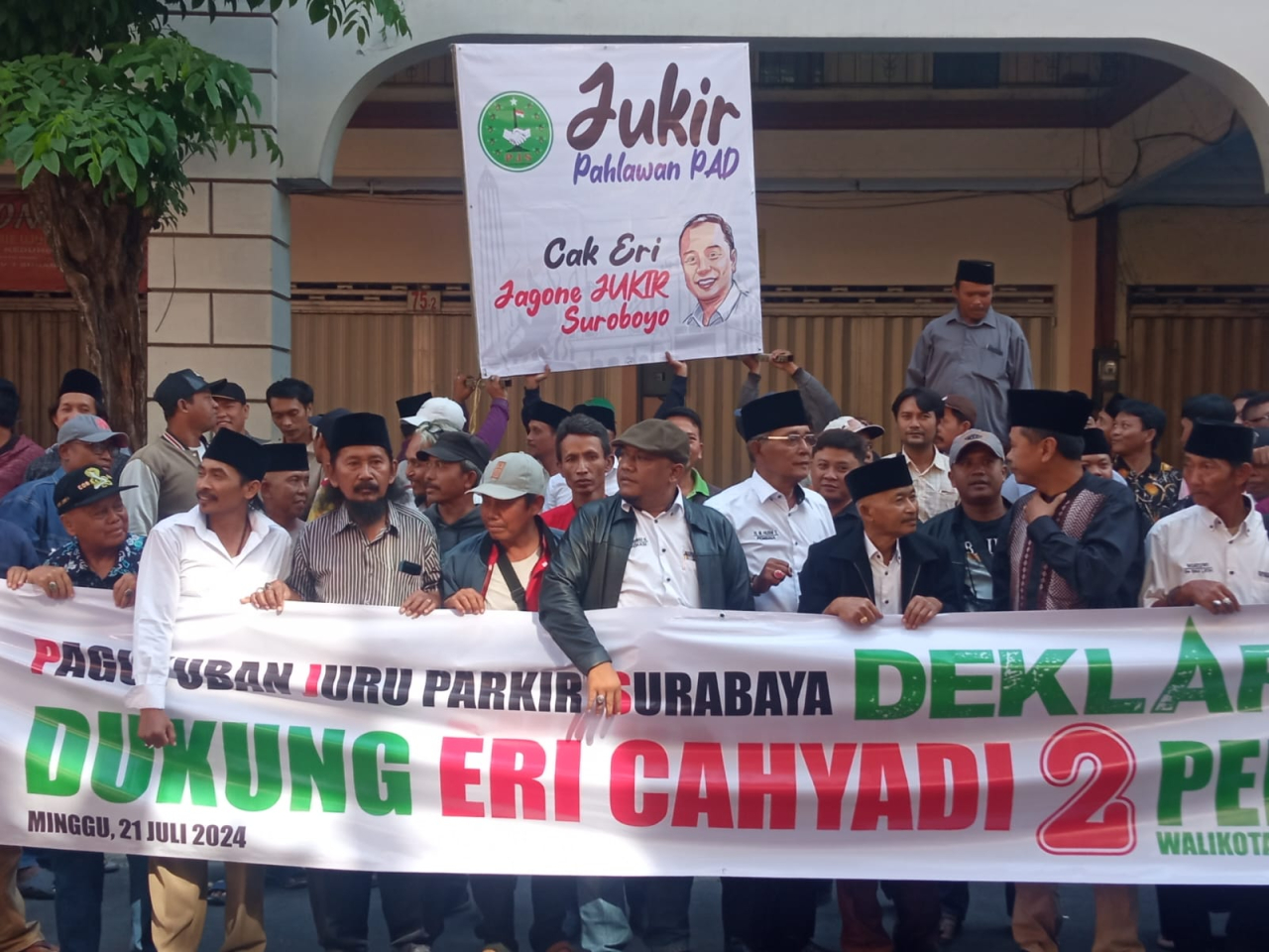 Deklarasi yang diikuti oleh lebih dari 400 jukir se-Surabaya itu disampaikan di halaman markas PJS yang terletak di Jl Karet, Surabaya, pada Minggu sore (21/07).