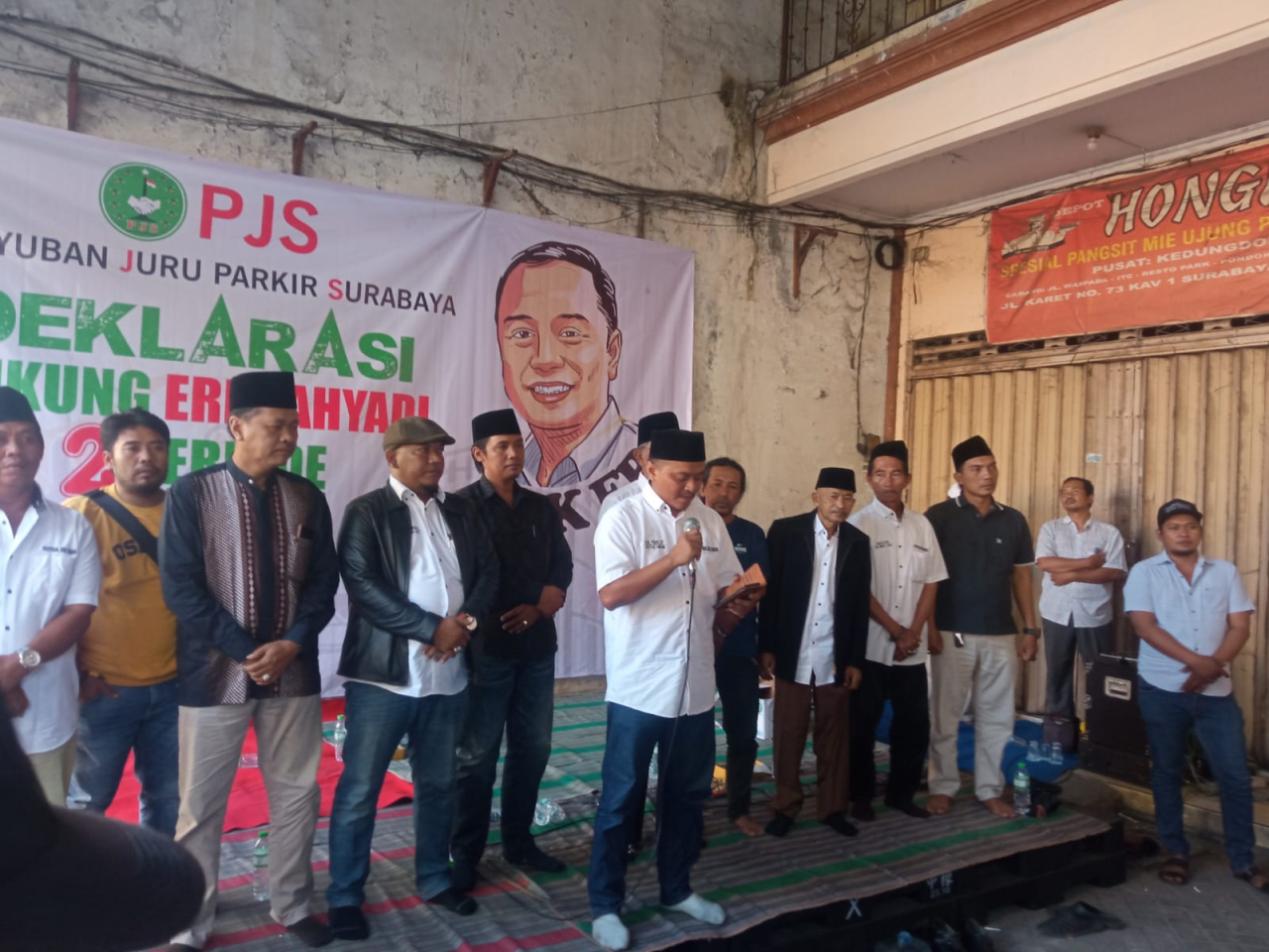 "Yang nantinya ending dari dukungan ini kita akan mengadakan Cak Eri Mlaku Bareng Juru Parkir Surabaya, Bangun Kota Surabaya," sambungnya.