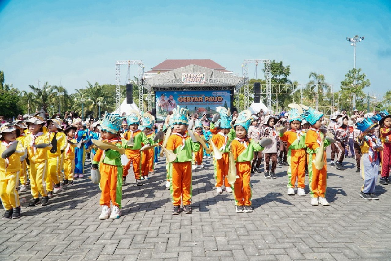 Gebyar PAUD sekaligus menandai Hari Anak Nasional (HAN) tahun 2024 pagi ini, diikuti oleh 750 anak PAUD dan TK perwakilan dari 2.264 lembaga PAUD di Kabupaten Lamongan. Seluruhnya akan melaksanakan bazar prasiaga, permainan edukatif dan tradisional, hingga penampilan Tari Lele serentak.