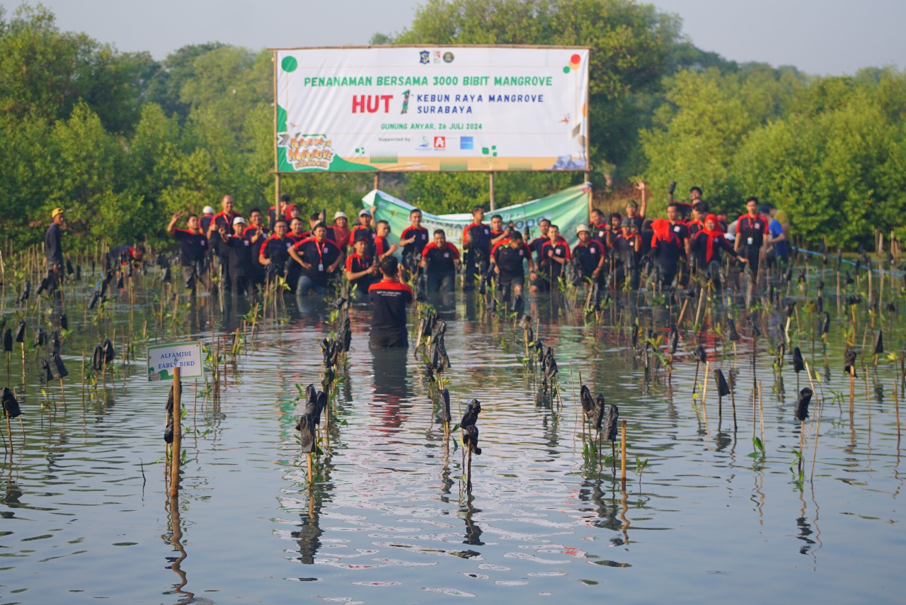 SURABAYAPAGI.COM, Surabaya - Dalam rangka memperingati Hari Mangrove se-Dunia dan ulang tahun pertama Kebun Raya Mangrove Surabaya, diadakan penanaman 3000 bibit mangrove. Acara ini tidak hanya menjadi momen penting untuk lingkungan, tetapi juga menjadi ajang edukasi bagi generasi muda.