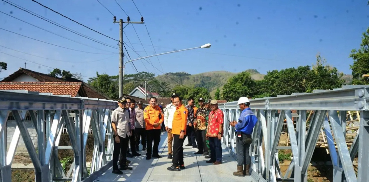 Berdasar peninjauan lokasi, lanjut ia mengatakan, progres perbaikan jembatan ini sudah rampung, tinggal finishing di beberapa titik saja. Jembatan bailey yang sedianya akan diresmikan Pj Gubernur Jatim ini dibangun dengan lebar lajur 3,15 meter, panjang 27 meter, dan kekuatan tonase seberat 40 ton.