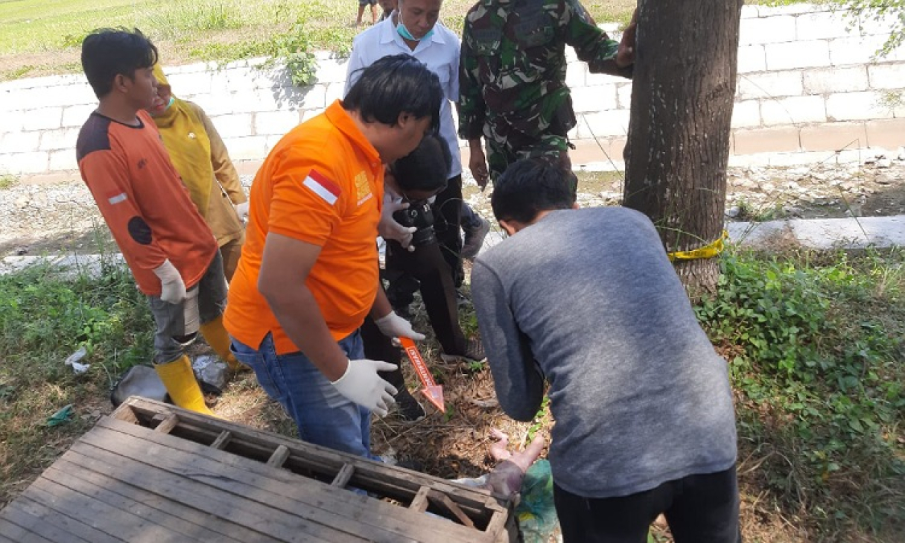 "Perangkat desa ke lokasi, awalnya dikira seperti kelihatan kresek dipikir sampah, ternyata kelihatan kakinya," terangnya.