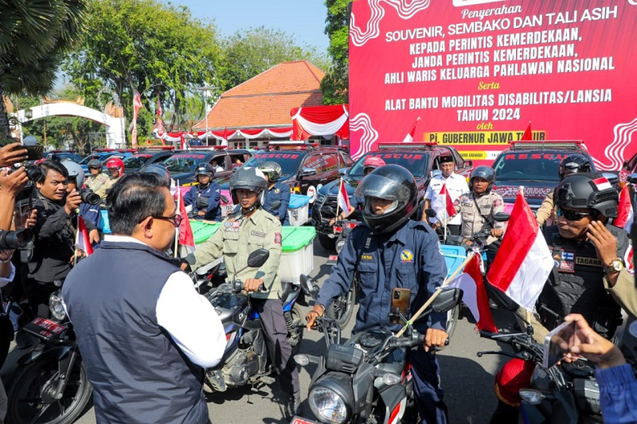 Untuk menyalurkan apresiasi tersebut, Pj Gubernur Adhy Karyono akan memberangkatkan 39 orang Tenaga Kesejahteraan Sosial Kecamatan (TKSK) dan dan 39 orang Taruna Siaga Bencana (TAGANA) untuk menyalurkan tali asih sebesar Rp 2.500.000 per orang dari Pemerintah Provinsi Jatim, dengan rincian, tiga orang perintis kemerdekaan, 87 orang janda perintis kemerdekaan dan 30 orang ahli waris keluarga pahlawan nasional, yang nantinya akan menerima sebesar Rp 2.500.000 per orang dari Pemerintah Provinsi Jatim.