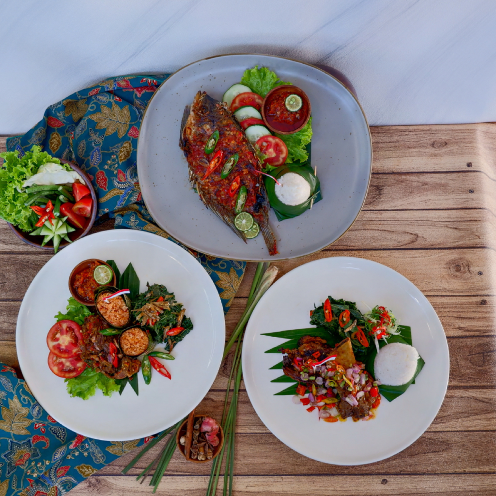 Rempah-rempah khas Indonesia yang digunakan dalam menu makanan tersebut memiliki cita rasa yang cenderung pedas, kaya rasa, beraroma sedap dan nikmat yang disesuaikan dengan rasa favorit penikmat makanan Indonesia yang lebih banyak menyukai cita rasa pedas penuh bumbu dan rempah. Gurami Bakar Puputan, mengadaptasi dari kata Puputan yang berasal dari bahasa Bali yang artinya Perang pada saat penjajahan sehingga beberapa rempah yang digunakan merupakan rempah yang umum digunakan pada masakan khas Bali seperti kunyit, kencur, sereh, jahe, jeruk limau, dan cabe yang membuat cita rasa nya semakin pedas dan wangi. Beragam rasa dari rempah yang berpadu di dalam mulut seperti sedang perang dan bergerilya. Gurami di bakar dengan sedikit kecoklatan kemudian disajikan lengkap bersama sambal, lalapan, dan nasi putih hangat. Selanjutnya ada Iga Bakar Rancak Bana, mengadopsi kalimat dari Bahasa Sumatera khususnya Padang, sehingga rempah-rempah yang digunakan juga cenderung seperti beragam olahan hidangan ala Sumatera seperti aneka cabai, kapulaga, kayu manis, cengkeh, sereh, daun jeruk, jinten, ketumbar, yang menghasilkan bumbu berwarna merah, gurih, pedas, wangi rempah yang khas dan lezat.